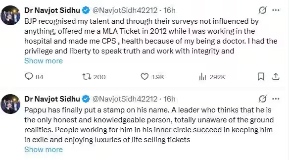 ਇਸ ਤੋਂ ਬਾਅਦ, ਸਿੱਧੂ ਨੇ ਕਿਸੇ ਦਾ ਨਾਮ ਲਏ ਬਿਨਾਂ, ਇੱਕ ਟਵੀਟ ਵਿੱਚ ਖੁੱਲ੍ਹ ਕੇ ਰਾਹੁਲ ਗਾਂਧੀ ‘ਤੇ ਨਿਸ਼ਾਨਾ ਸਾਧਿਆ। ਉਸਨੇ ਨਾ ਸਿਰਫ਼ ਉਨ੍ਹਾਂ ਨੂੰ ਨਿਯੁਕਤੀ ਤੋਂ ਇਨਕਾਰ ਕੀਤਾ ਸਗੋਂ ਉਨ੍ਹਾਂ ‘ਤੇ ਟਿਕਟਾਂ ਵੇਚਣ ਦਾ ਵੀ ਦੋਸ਼ ਲਗਾਇਆ।
